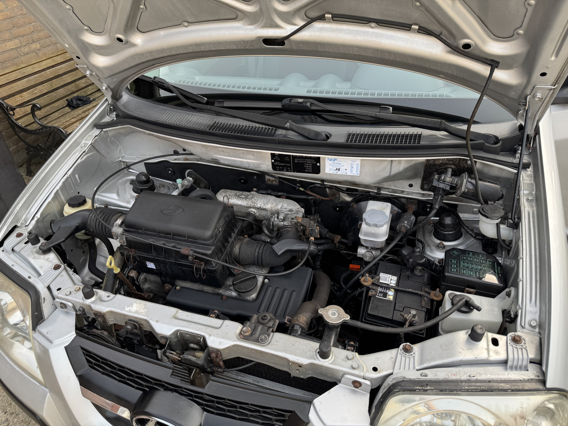 Hele nette Hyundai Atos. Onlangs groot onderhoud gehad t.w.v. €1300,- Nieuwe banden, rijdt/schakelt goed en airco werkt. Distributieriem is vervangen. 2e eigenaar. Alle boekjes en sleutels aanwezig.